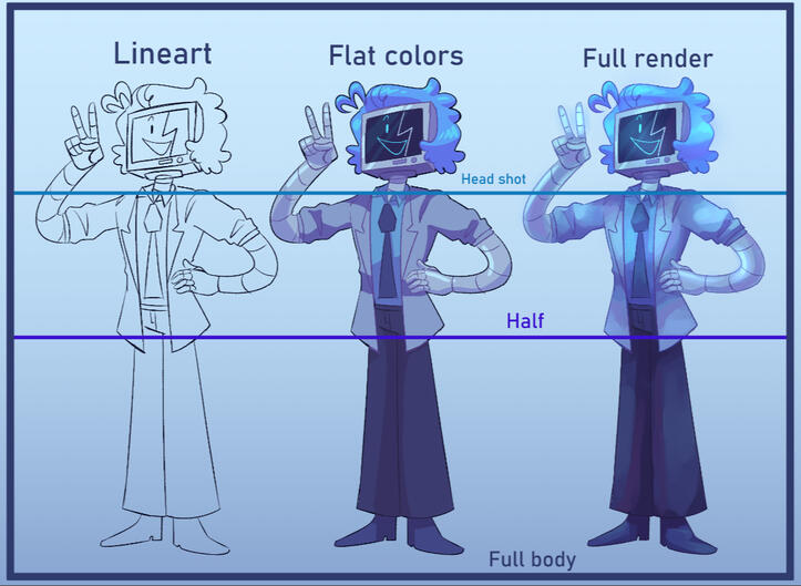 I have the right to refuse service for any reason, whether I'm uncomfortable with the subject matter, the deadline, or anything else.As the artist, I am allowed to post my commission work and to use them for portfolios. I will not use them as products or sell prints (unless the client is comfortable with it). The art still belongs to me.Do not sell my artwork. Do not use for commercial use. Do not use it to create NFTs. What I create through commissions for is strictly for personal use. You are allowed to use them for banners or profile pics.I will not accept major changes to the commission (composition, profile, commission type, character change) after payment. This is what the sketching stage is for.